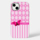 © Sunny Mars Designs. Cobrir telefônicos personalizados, bonitos, giros e femininos, impressos, personalizáveis Case-Mate, com um estilo rosa e um design de faixa com uma fita, uma borboleta rosa e um lugar para adicionar seu nome na fita. ele adiciona seu próprio nome ou outro texto a ela.
