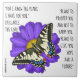 Um azulejo floral brilhante de borboleta pintada em um grande florescimento roxo, com verso de Jeremiah 29:11.