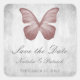 Casamento elegante e simples Guarde os adesivos com borboleta cor-de-rosa contra fundo de cinza. Esta design é uma escolha única para anunciar um casamento moderno. Fácil de personalizar com seus detalhes de casamento. Clique em "Personalizar" para encontrar mais opções de personalização.