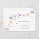 Delicada borboletas esboçadas em voo decoram este RSVP. Esta é parte da coleção completa de casamentos Purple Butterfly Kisses. Ele coordena-se facilmente com a coleção de casamento "Coração" ou "Bicicletas de Borboleta".