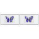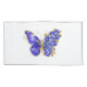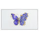 Joias, azul, safira, borboleta de flor cintilante com asa decorada com flores azuis preciosas com folhas de ouro sobre fundo branco.