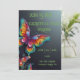 Celebre o seu amor com este belo convite de casamento, que inclui uma espantosa variedade de borboletas vibrantes e multicoloridas colocadas sobre um fundo profundo e elegante. Os detalhes intrincados de cada borboleta criam uma sensação de charme caprichoso e beleza natural, simbolizando a transformação, o amor e a alegria de novos começos. Perfeito para um casal que quer adicionar um toque de cor e de magia ao seu dia especial, este convite é ideal para casamentos de jardim, comemorações de primavera, ou qualquer evento que abraça a beleza da natureza. Personalize o seu texto e faça com que este design encantador seja exclusivamente seu para dar o tom perfeito para sua inesquecível celebração de casamento.