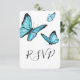 Cartão de confirmação de presença de casamento com borboletas aquarela azul. Escolha elegante para casamentos de verão. Parte de uma coleção de casamento. Cartão com escolha de refeição.