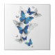 Borboletas azuis voadoras morfo e borboletas brancas em um fundo de abstrato leve. Morpho. Design com borboletas azuis morpho.