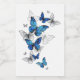 Borboletas azuis voadoras morfo e borboletas brancas em um fundo de abstrato leve. Morpho. Design com borboletas azuis morfo.