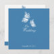 5,25" x 5,25" design azul e branco do amparo moderno e elegante da borboleta. Inteiramente customizável. Disponível como convites, economia--data, anúncio, rsvp, favores para casamentos, partidos, chá de panela, noivado e algumas outras ocasiões especiais.