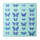 Uma série de borboletas especuladas em tons de azul profundo, sobre um fundo turquesa pálido