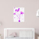 Um belo desenho de borboletas feito em púrpuras e pinks saindo de uma flor cercada por estrelas em um impressão