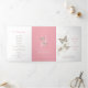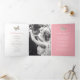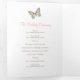 Um programa de renovação de casamento ou cerimônia de casamento de seis páginas. Edite este programa de casamento com seus próprios nomes, datas, apresentação, texto da cerimônia, assistentes de festa de casamento, foto do seu primeiro elopeio ou casamento restrito, ou uma foto do seu noivado, e adicione suas próprias palavras de obrigados no verso. Estão disponíveis borboletas cor-de-rosa, castanho, lacas e creme, bem como outros produtos de casamento coloridos e opções de cores. Arte e design originais pintadas com borboleta por Sarah Trett para www.mylittleedenweddings.com no Zazzle.