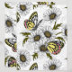 Padrão de vetor desenhado à mão com borboletas de jezebel e flores margaridas