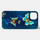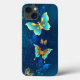 Ouro voador, borboleta de joias em fundo textural azul. Design com borboletas.