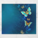Ouro voador, borboleta de joias em fundo textural azul. Design com borboletas.