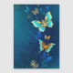 Ouro voador, borboleta de joias em fundo textural azul. Design com borboletas.