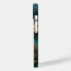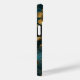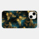 Uma capas de iphone elegante (mal ali) com padrão de borboletas em tons de ouro reluzentes e azuis brilhantes.