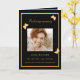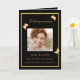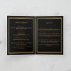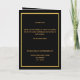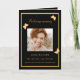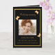 Um elegante programa de 4 páginas. Um fundo preto, uma moldura dourada falsa e espaço para a sua foto na frente. Decorado com 3 borboletas douradas. Personalize e adicione nome, datas e seu texto. Texto dourado.