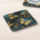 Uma porta copos de plástico elegante com padrão de borboletas em tons de ouro reluzentes e blues brilhantes.