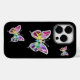 Um bonito design com cristal multicolorido e borboletas de diamante sobre fundo preto.