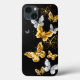 Borboletas Douradas, joias e brancas sobre fundo preto. Borboleta ouro.