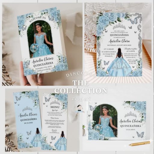 Sky Blue Floral Silver Quinceañera Sweet 16Criado por The Happy Cat Studio