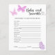 Beijos de borboletas roxas, lilás, rosa, e chá de fraldas de desejos de bebês. Cartões de chá de fraldas de borboleta para uma menina. Itens correspondentes disponíveis. Respostas: CRAVINGS, CRYING, PACIFIER, FRASCO, LUZ NOTURNA, LULLABY, STROLLER, EPIDURAL, BURP, ALTA CADEIRA, SACO DE FRALDA, SWADDLE