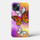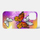 Laranja, borboletas monarcas detalhadas sobre luz, roxo, pitoresco, fundo pintado.