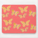 Um bonito mouse rosa, decorado com borboletas cor de laranja/rosa.