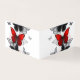Bando de borboletas voadoras, realistas, vermelhas e pretas em fundo branco com gotas de tinta.