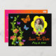 Este cartão postal de "save the date" de Bat Mitzvah selvagem e funky com foto tem videiras florais e borboletas neon verde, laranja, rosa, roxo, amarelo e azul, junto com uma Estrela de Davi e texto de Bat Mitzvah com efeito neon que combina com o convite de Bat Mitzvah mostrado abaixo. O texto é personalizável. Se você quiser adicionar algum texto em hebraico, ou se você precisar de outros itens correspondentes, por favor envie um e-mail para niteowlstudio@gmail.com com sua solicitação.