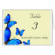 Cartão bonito do número da mesa da recepção de casamento feito em um amarelo pálido. As borboletas azuis decoram o lado esquerdo deste cartão bonito do número da mesa. O texto é inteiramente customizável no estilo de pia batismal, nas cores, e nos tamanhos.