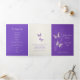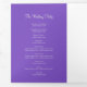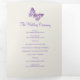 Um programa de cerimônia de renovação do casamento de seis páginas. Edite este programa de casamento com seus próprios nomes de renovação de casamento, datas, introdução, redação de cerimônias, assistentes de festa de casamento, foto de seu primeiro elopeio ou casamento restrito, e seus obrigados. Estão disponíveis outras borboletas roxas e creme correspondentes e outras opções de cores para o casamento. Arte e design originais pintadas com borboleta por Sarah Trett para www.mylittleedenweddings.com no Zazzle.