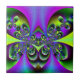 um azulejo colorido do design da arte do fractal de borboletas verdes escuro com fundo roxo