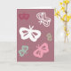 Padrão de borboletas voadoras usando cores contrastantes. O interior diz: "Feliz Aniversário!" O texto pode ser alterado ao seu gosto, ou excluído se desejar receber este cartão em branco por dentro. Padrão de Borboletas Voadoras © 2018 Regina Blankenship.