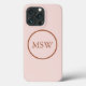 As iniciais personalizadas do monograma são cor-de-rosa-claro e cor clara e cinza-branca. Minimalista, simples, moderno, na moda design. Texto serif personalizável e detalhe de borda circular com rosa poeirento sobre fundo de cor sólida e cor rosa-claro.