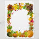 Abóboras, peras maduras, flores de girassol e bagas formam uma fronteira de colheita em outono.