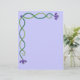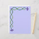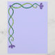 Este papel de carta apresenta design de borda superior e esquerda de videiras entrelaçadas com flores roxas. A cor de fundo pode ser alterada.