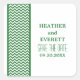 Borda Chic e Chevron moderna Salve os adesivos de Data com uma simples borda padrão Chevron em verde escuro e branco. Esta design de na moda vai dar o tom para um casamento elegante. Fácil de personalizar, basta adicionar os detalhes do casamento nos campos de texto fornecidos. Clique em "Personalizar" para encontrar mais opções de personalização.