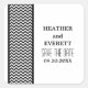 Borda Chic e Chevron moderna Salve os adesivos de Data com uma simples borda padrão Chevron em preto e branco. Esta design de na moda vai dar o tom para um casamento elegante. Fácil de personalizar, basta adicionar os detalhes do casamento nos campos de texto fornecidos. Clique em "Personalizar" para encontrar mais opções de personalização.