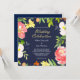 O tema do casamento floral tem um olhar moderno atualizado com este convite ousado e brilhante para o casamento. Ele apresenta uma borda floral esplêndida em um fundo azul marinho dramático. As cores incluídas são cor-de-rosa, amarela, branca, laranja tangerina e verde. Seu texto personalizado está em branco no centro, com a tipografia "Celebração de Casamento" em ouro. A parte de trás do convite é azul marinho de correspondência sólida. Certifique-se de ver os produtos de casamento correspondentes na nossa loja.