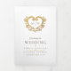 Programa de casamento de monograma com duas fotos de cheio. Personalize este programa triplo de casamento com os seus próprios detalhes da cerimônia de casamento. Design de coração de ouro decorativo circulando suas próprias iniciais de monograma em marrom escuro e ouro em branco. Outras cores e itens de casamento correspondentes disponíveis. © Desenho original em folha e design por Sarah Trett para www.mylittleedenweddings.com no Zazzle.