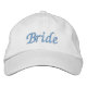 Boné branco de beisebol, brilhante, com texto bordado azul. Personalizar com cores ou texto diferentes!