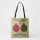 Esta mala de tote útil apresenta dois Enfeites de natal com colinas de borda em vermelho e verde com ranhuras de preto. Personalize o bolsa deste amante de cachorro com suas próprias iniciais, um nome curto ou exclua o texto.