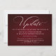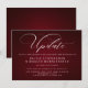 Belo Burgundy com letras brancas e uma grande caligrafia - "Atualização" no topo - Se você já enviou os convites e teve que pausar inesperadamente a data do seu grande evento, envie-os para os seus convidados. Usamos uma fonte de letra manuscrita moderna para o título 'novos planos', você pode facilmente alterar essa palavra basta digitar entre as caixinhas para manter os floreios iniciais e finais. Use os demais campos do modelo para adicionar seus detalhes pessoais e tornar esse design moderno seu.