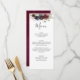 Nosso menu moderno do casamento caracteriza uma Borgonha e um arranjo de flores azul da aguarela.
