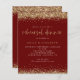 Uma alternativa de orçamento com bom custo-benefício em um tamanho menor de 4,5 x 5,6” semi-brilho com 110lbs de peso, que tem uma espessura semelhante à de um cartão postal (no entanto, não é adequado para uso como cartão postal). POR FAVOR, OBSERVE que há UM convite por folha. Convite para Jantar de Rehearsal com Brilho Dourado Burgundy Econômico. Bordas elegantes de confete com brilho dourado falso estão no topo e na parte inferior e também na parte de trás. Jantar de Rehearsal é definido em um estilo de escrita manual moderno e os outros detalhes abaixo. Personalize facilmente o restante do texto para o seu.