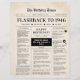 Take a nostalgic journey back to 1946 with this sepia-toned vintage newspaper birthday keepsake. Designed to look like a real newspaper from the era, it’s a standout gift or unique party decoration that captures the spirit of the times. Featuring authentic headlines, major world events, and pop culture highlights - like the year’s biggest movies, music, and celebrity births, it’s a thoughtful way to celebrate a milestone year.