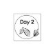 Carimbo com cápsula de cacau e "Dia 1".