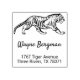 Este belo carimbo de madeira para endereço de remetente foi feito pensando nos amantes de tigres. O design do carimbo apresenta uma ilustração vintage de um tigre em movimento. O nome e endereço personalizados são impressos abaixo da imagem em duas fontes diferentes. O nome é impresso em uma letra decorativa maior, enquanto o endereço é uma impressão limpa e fácil de ler.