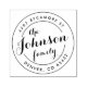 Carimbo de endereço de retorno personalizado com o nome da família no script de caligrafia, marcado pelo endereço em uma fonte moderna. Use para convites para casamento, anúncios e cartões de natal. Para alterar o tamanho e posicionamento do texto, use o botão Personalizar/Personalizar.