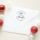 Este carimbo de endereço de retorno clássico apresenta o sobrenome da sua família no centro, com o seu endereço em círculo à sua volta. Torna o envio de convites e cartões de natal um pouco mais ou use-o como um anúncio comovente para compartilhar seu novo endereço com a família e os amigos.
