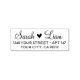 Adicione seu endereço de devolução em estilo com esses carimbos de endereço personalizados. Apresentando um design de script de caligrafia de rico, seu endereço e nomes e um coração. Excelente para todas as suas mensagens de correio, bem como um presente de aniversário ou de inauguração de casa ou um presente personalizado para todas as ocasiões! Você pode usá-lo para seus cartões de visitas também.